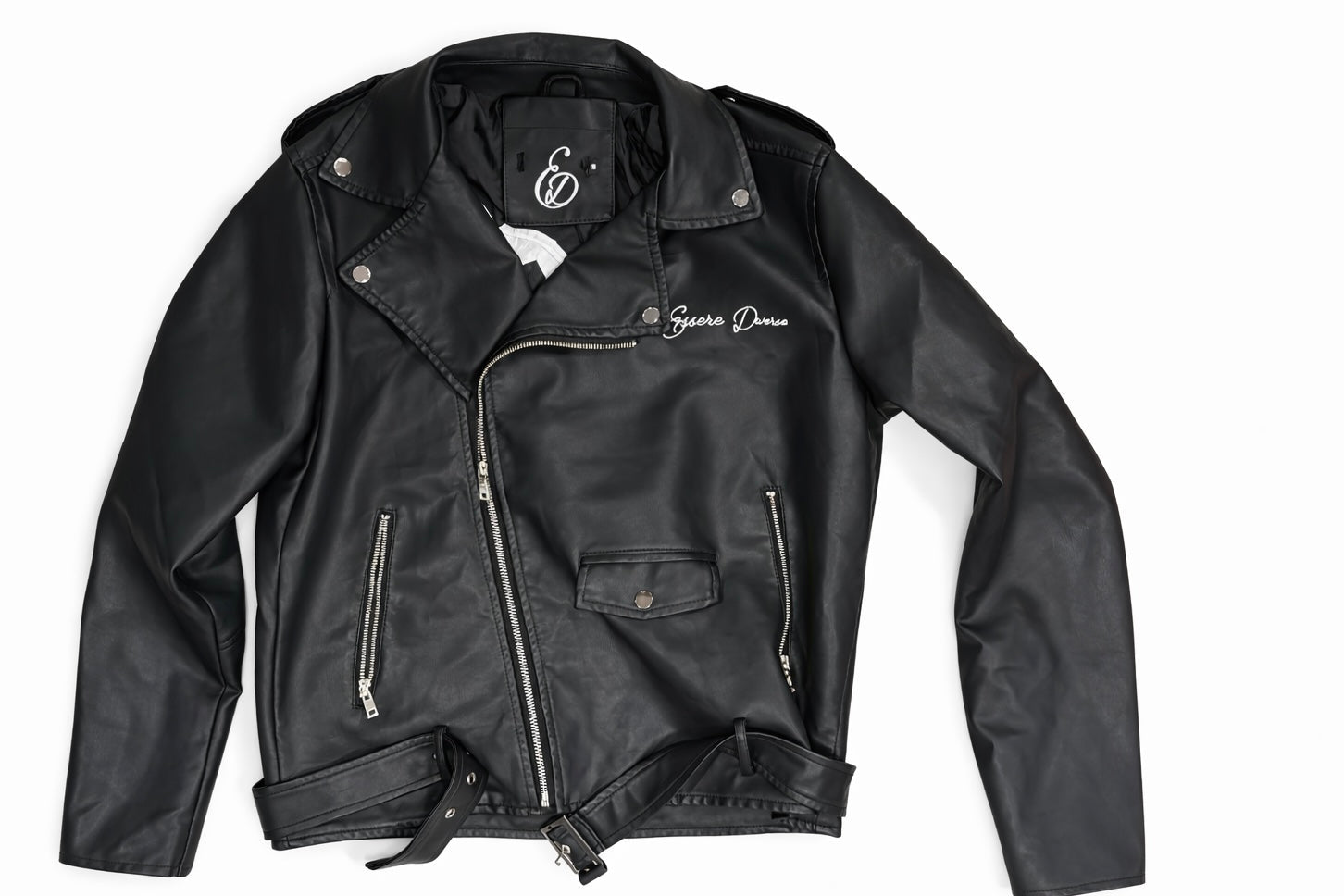 "Dare to Be Different" leather biker jacket a bold statement piece that...